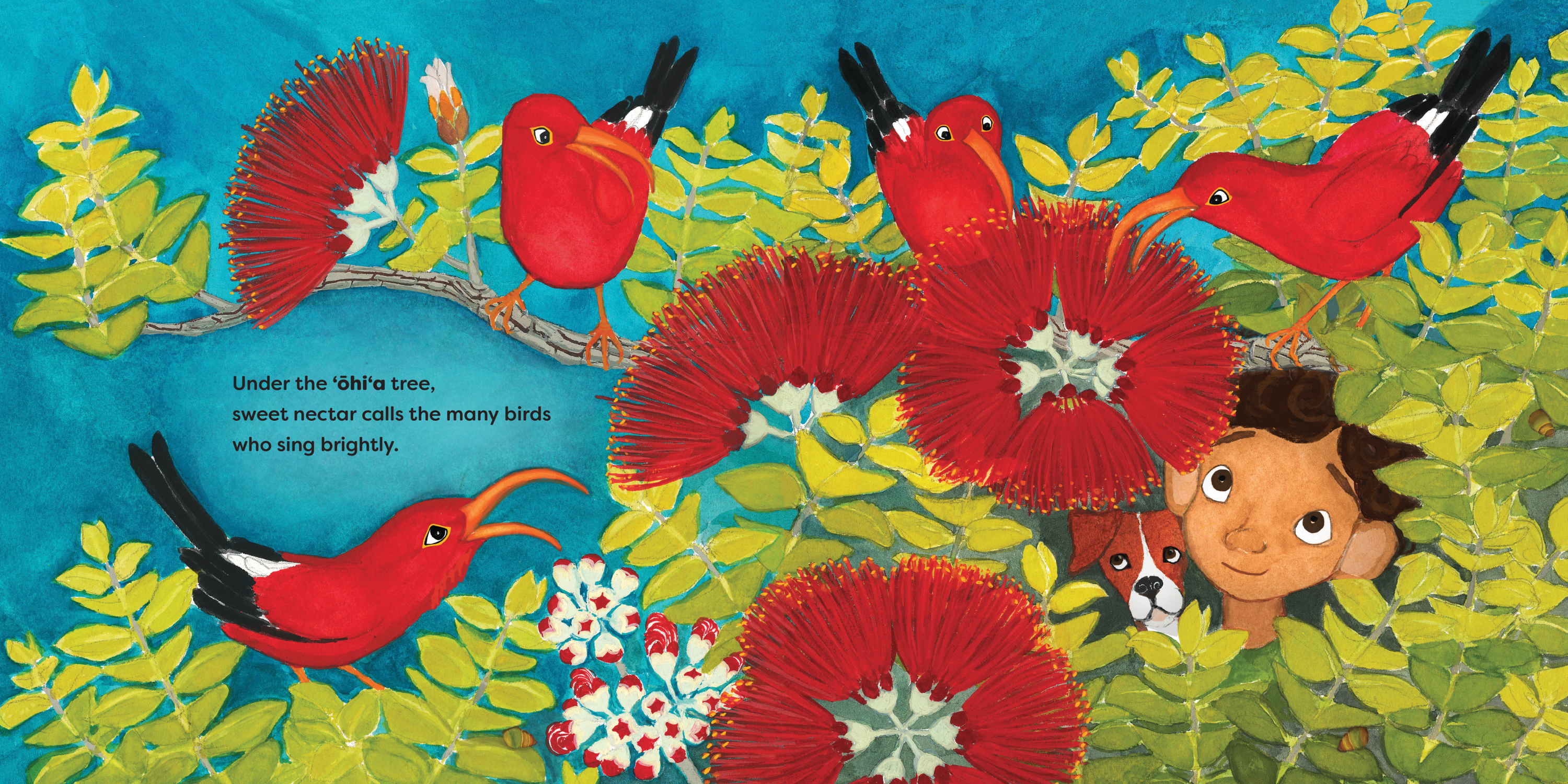 Each page is filled with hidden creatures nestling in the trunks and under leaves that you will come to know fondly as you return to this book time and again. Readers will be left inspired and awe-struck by our incredible ʻōhiʻa tree and the miracle of the remaining native species that thrive around them—especially our remaining native forest birds.